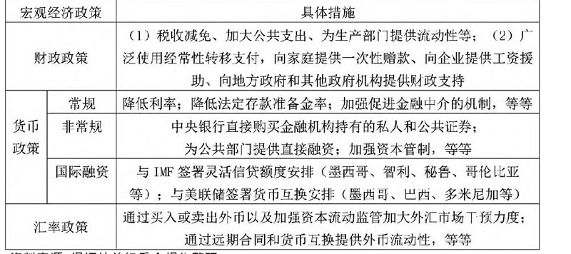 表1 拉美国家应对疫情冲击的宏观经济政策