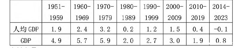 表2 1951-2023年拉美地区人均GDP和GDP年均实际增长率(%)