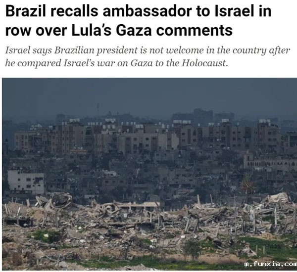 以色列方面宣布卢拉“不受欢迎”,巴西召回了驻以大使。